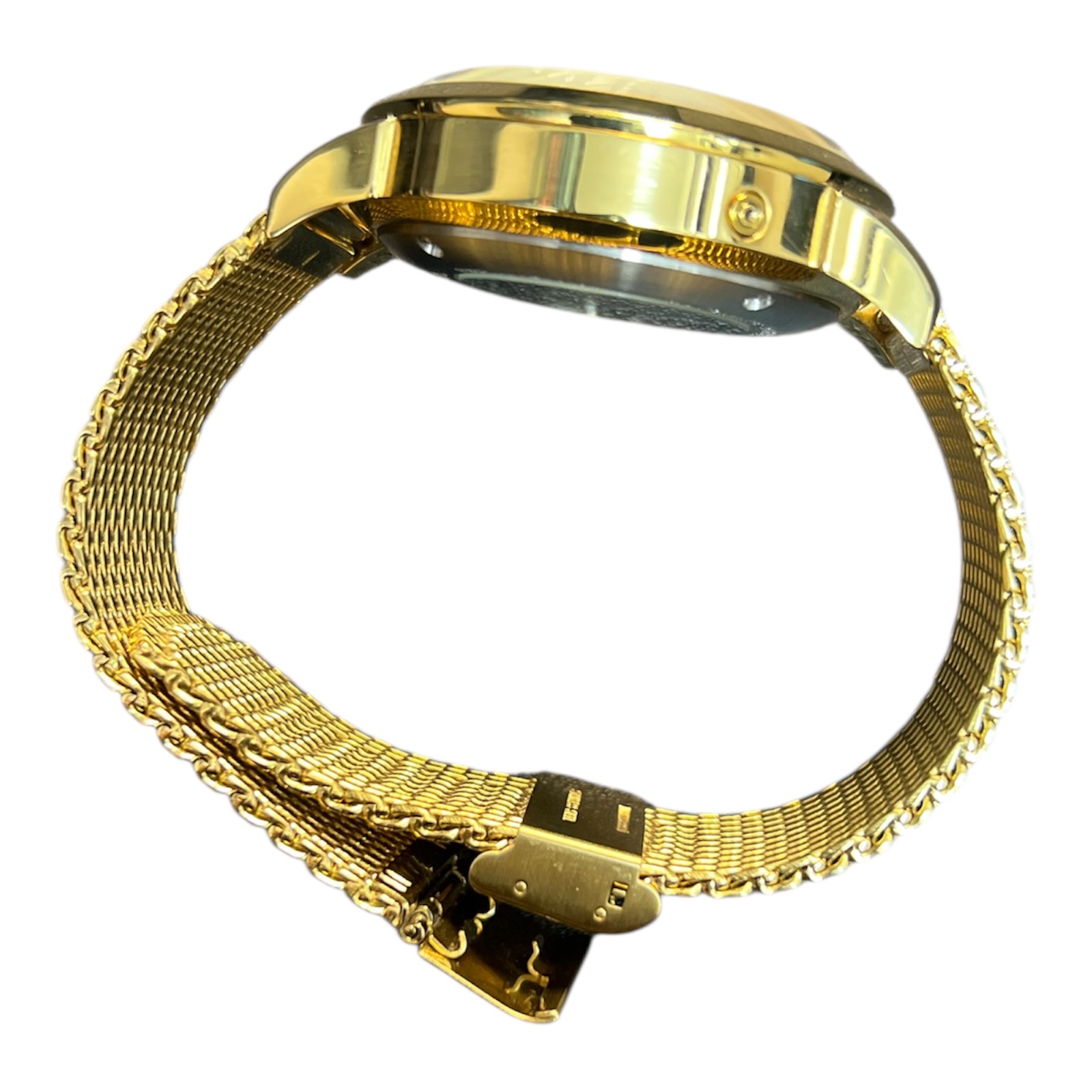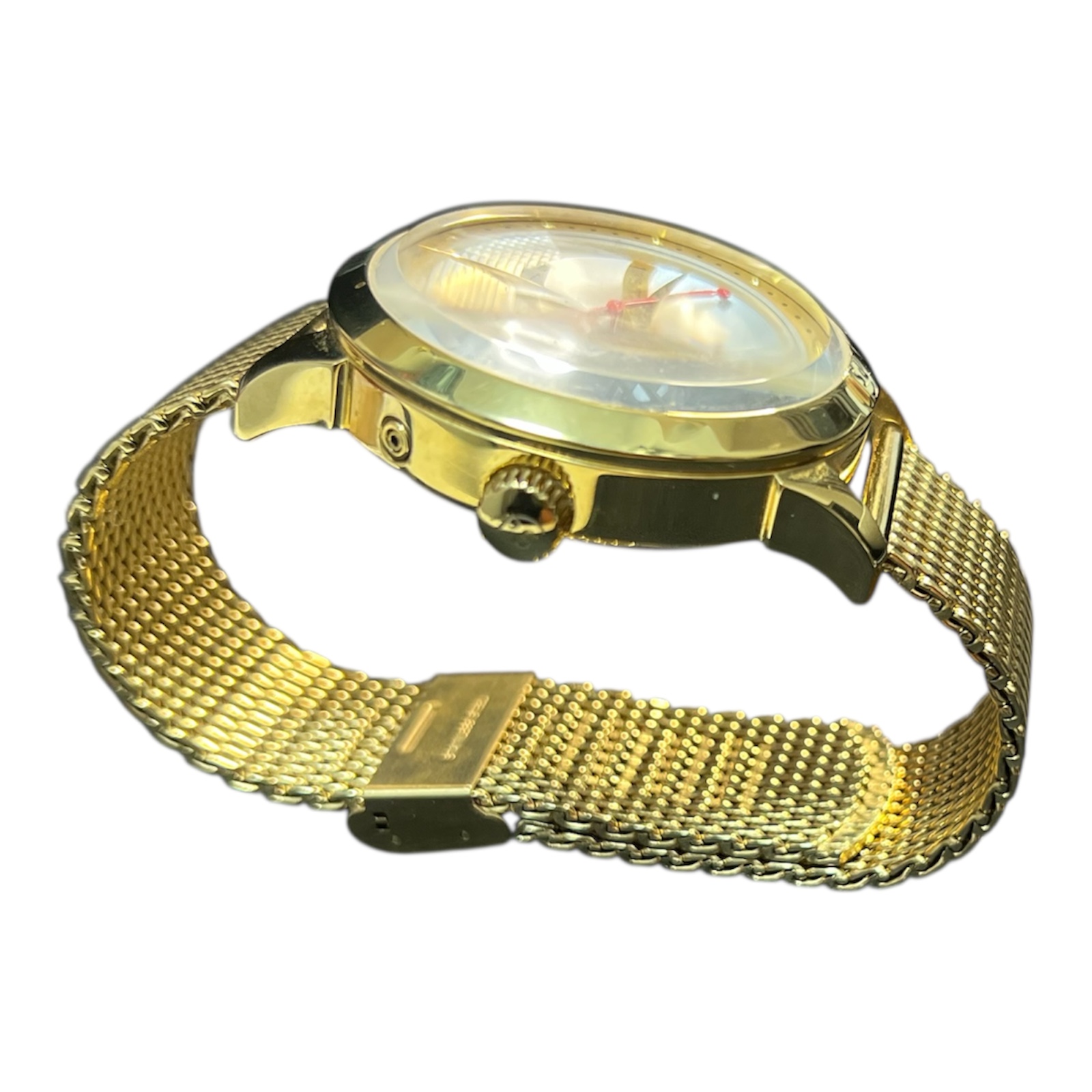Das goldfarbene Edelstahlgehäuse und das hochwertige Mesharmband verleihen der Uhr einen besonders edlen Charakter. Die Kombination aus funktionaler Technik und luxuriösem Design macht dieses Modell zum perfekten Begleiter für Business, Events und den stilvollen Alltag.
